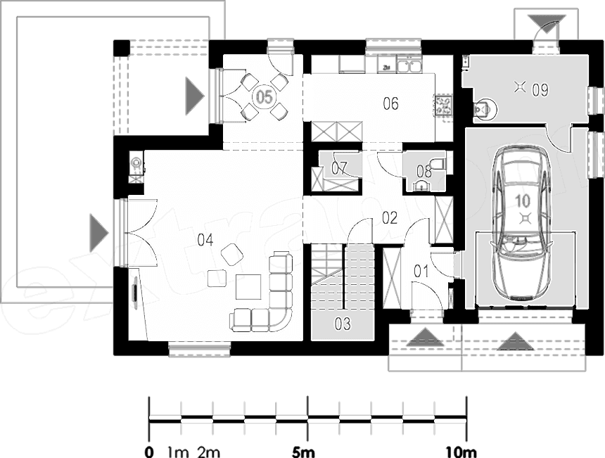 • Гараж в данном доме подойдет не Пин Ап для машины, в нем можно разместить верстак и стеллажи для инструментов.